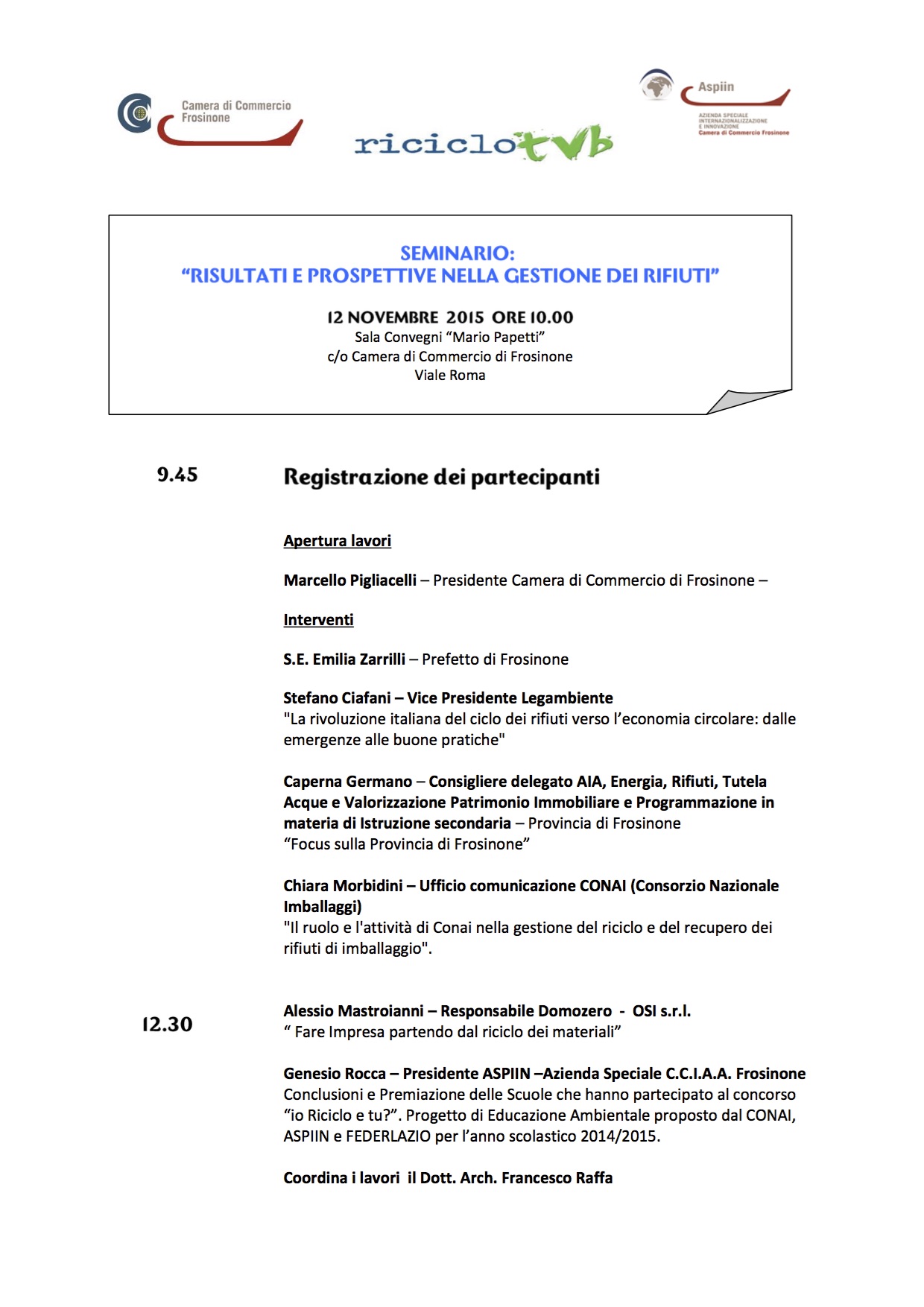 Nella mattinata dell’12 novembre 2015 abbiamo partecipato ad un seminario, organizzato dalla Camera di Commercio di Frosinone, dal titolo “Risultati e Prospettive nella gestione dei Rifiuti”.