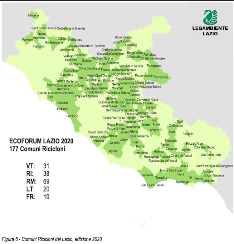Complessivamente, la Regione Lazio supera il 50% di raccolta differenziata, grazie soprattutto ai piccoli comuni e nonostante i pessimi risultati di Roma Capitale che si conferma avere una insufficiente gestione dei rifiuti solidi urbani. L’obiettivo del Piano Rifiuti Regionale è di arrivare al 70% di raccolta differenziata entro il 2023. Quest’anno l’Ecoforum si è svolto con le modalità consentite dall’emergenza sanitaria, senza la possibilità di premiare in presenza le amministrazioni più virtuose.