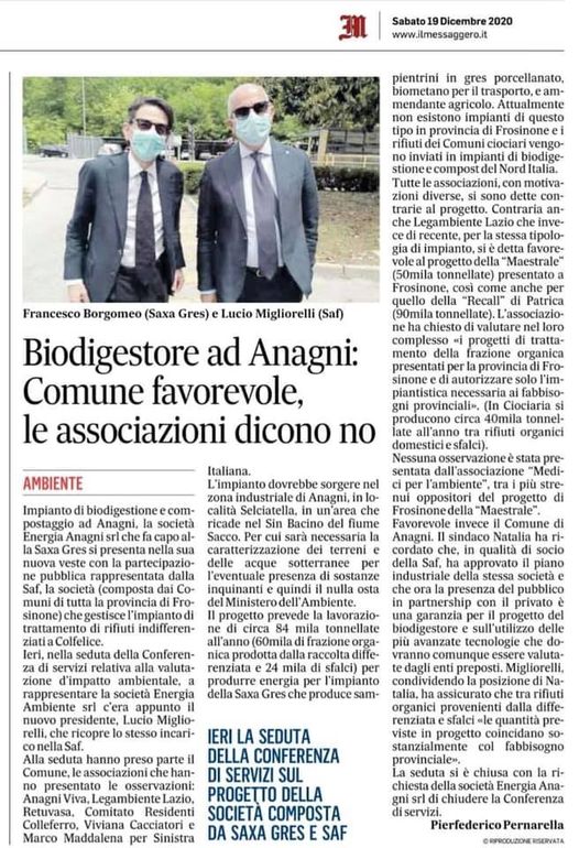 Ieri pomeriggio, 18 dicembre, abbiamo partecipato alla seconda seduta della conferenza di servizi per l’impianto di Biodigestione proposto da Energie Anagni ed attualmente in Valutazione di Impatto Ambientale presso la Regione Lazio.