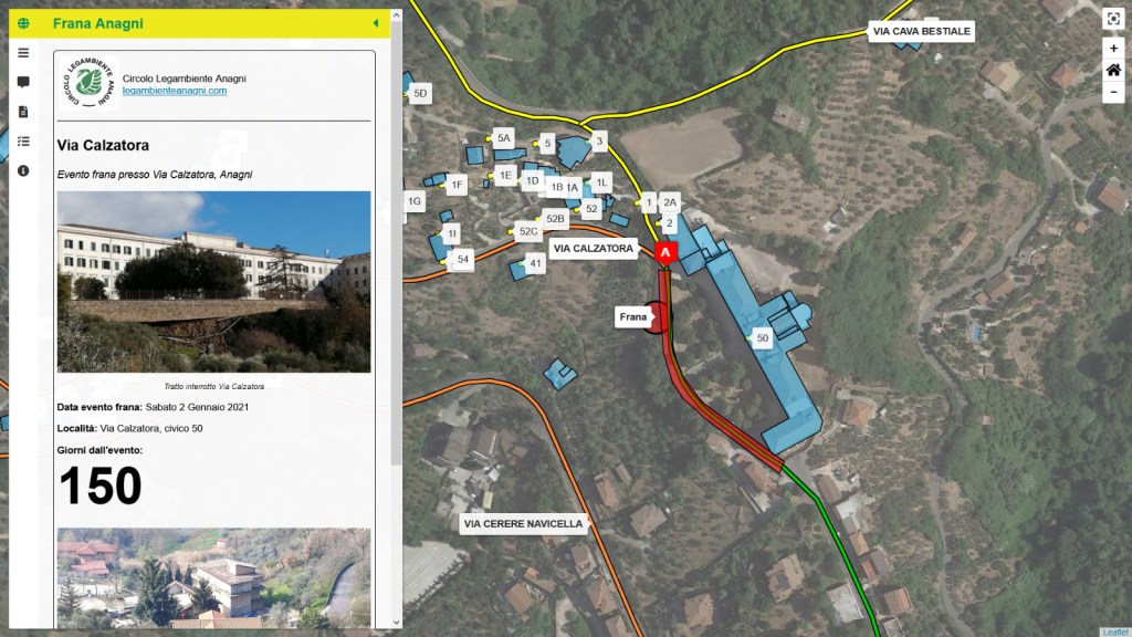 Trascorsi cinque mesi, siamo costretti a registrare come non ci siano stati progressi significativi per la risoluzione del problema. Attendiamo risposta alle richieste di accesso agli atti presentate alla Regione Lazio e al Comune di Anagni per conoscere quale sia lo stato delle azioni tecnico-amministrative per la risoluzione del problema, il ripristino della porzione di territorio interessata dalla frana e la conseguente riapertura di Via Calzatora al traffico veicolare ed al passaggio pedonale.