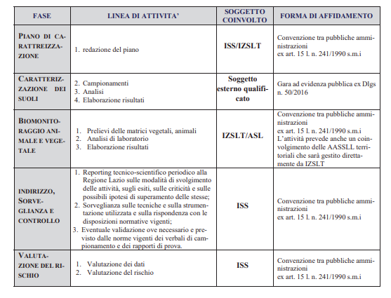 Per l’esecuzione dell’attività di campionamento e analisi dei terreni è stata espletata una gara che ha portato all’aggiudicazione del servizio alla RTI ECOCONTROL-SAMAC APPALTI s.r.l, vedi Determinazione n. G02796 del 10/03/2022.