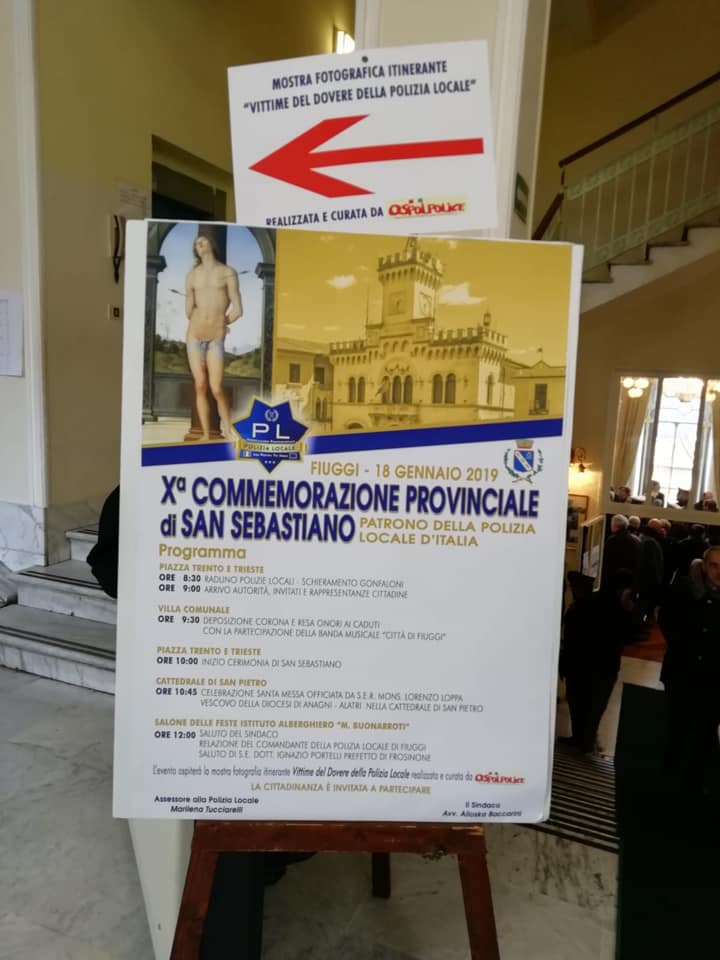 Oggi, 18 gennaio 2019, si è svolta a Fiuggi la X Commemorazione provinciale di S. Sebastiano, patrono della Polizia Locale d'Italia. La cerimonia è iniziata alle 8.30 con il raduno delle polizie locali della nostra provincia con i loro gonfaloni e la deposizione di una corona in onore dei caduti con l'accompagnamento della banda musicale … Leggi tutto Festa della Polizia Locale